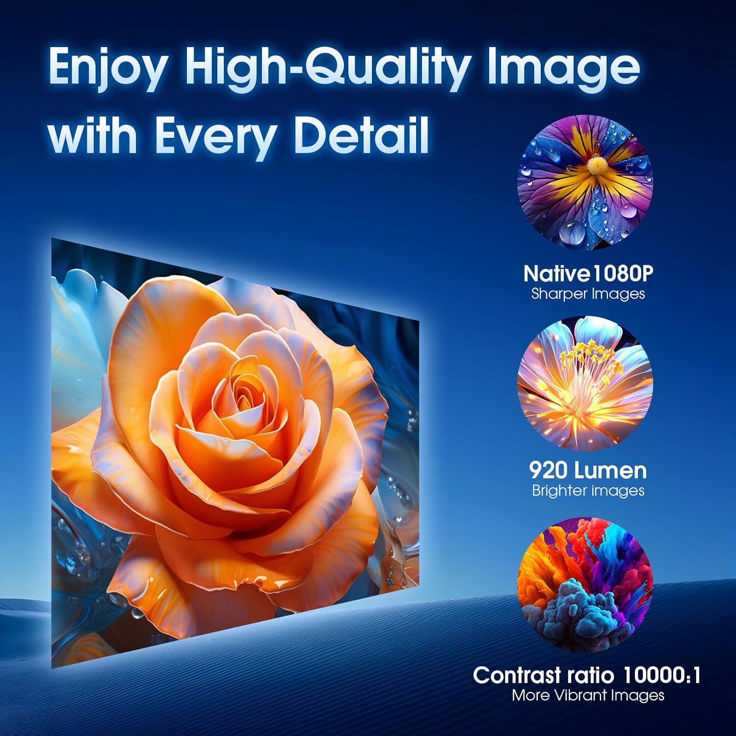 Answer 2: The projector offers stunning visuals with support for both 1080P Full HD and 4K content, showcasing richer colors and deeper contrast with a color range that exceeds standard RGB by 1.4 times. Coupled with a built-in HiFi speaker that delivers cinema-level sound, you'll enjoy a superior audio-visual experience compared to many traditional projectors.